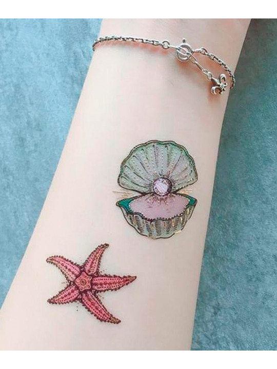 Tatouages éphémères motifs coquillages fruits de mer.